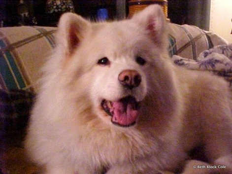 Snowy always loved to lick out the dog food can after her supper, that was her favorite thing to do. And if we ever spilled any food on the floor, we just said: “Snow E. Bear, clean up, aisle 3!” And she would come running and clean up whatever we had dropped on the floor.